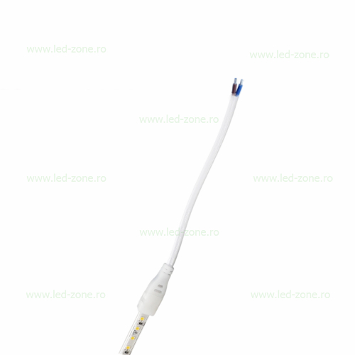 Alimentarea este compatibila cu banda LED 220V slim autoadeziva cu taiere la 10cm si se conecteaza la curent cu ajutorul celor 2 fire ale mufei. Aceasta are o mufa speciala pentru conectare la banda.