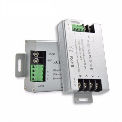 Amplificatorul RGB 30A-360W este perfect pentru aplicatiile cu lungimi peste 25ml de banda RGB 5050, se alimenteaza cu sursa de alimentare la 12V.