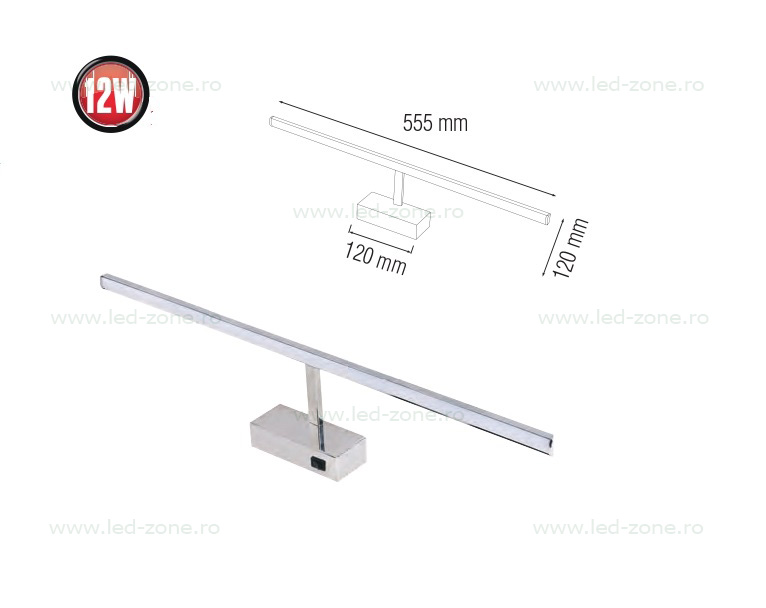 Specificatii Aplica Baie LED 12W Suport Nichelat KANARYA12