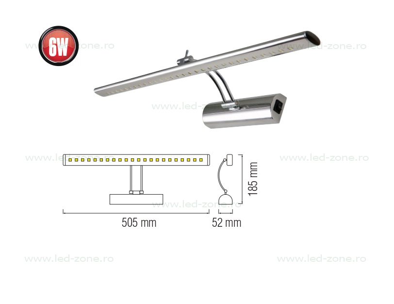 Specificatii Aplica Baie LED 6W Suport Nichelat LZF6