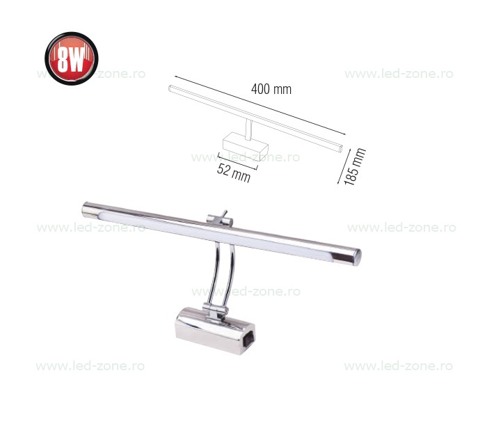 Descriere Aplica Baie LED 8W Suport Nichelat ANKA8