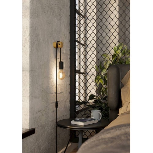 Aplică BUDDON E27-LED 1X13W IP20 lemn, oțel maro, negru