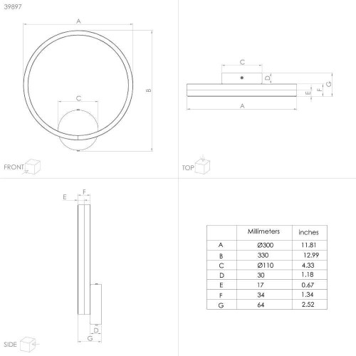 Aplică CADINARO 39897, LED, 12W, 3000K, IP20, oțel, lemn, gri, maro
