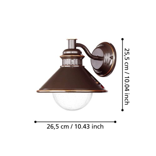 Aplica exterior EGLO ALBACETE 96262, E27 1X40W IP44, Sticla, Cupru, Maro