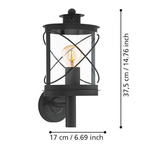 Aplică exterior HILBURN 94842, E27, 1X60W, IP44, oțel zincat, negru