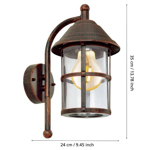Aplica exterior EGLO SAN TELMO 90184, E27 1X60W IP23, Sticla, Maro Antichizat