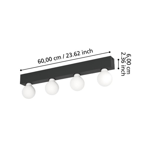 Aplică GUANAL 900517, E27, 4X40W, IP20, aluminiu, oțel, negru