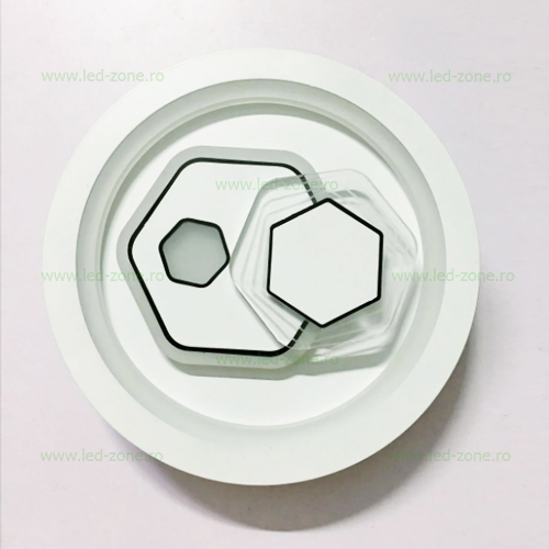 O aplica minunata, moderna, forma rotunda cu hexagoane. Stilul este cu adevarat contemporan, deoarece nu exista becuri voluminoase sau suporturi de iluminat pentru locuinte.