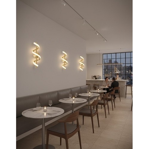 Aplica LED de 15 W cu design tip spirală este concepută pentru montaj pe perete și oferă un aspect modern, potrivit pentru diverse spații interioare.