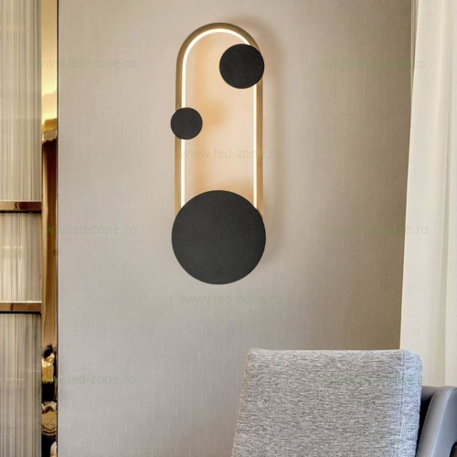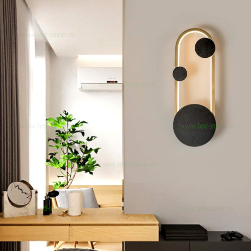 Aplica de Perete Modernă 15W cu 3 Funcții de Lumină – Carcasă Negru cu Auriu