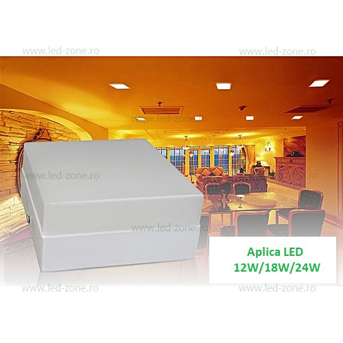 Aplicele LED patrate au dispersor mat si ofera o lumina uniforma, montajul se poate realiza pe orice tip de tavan sau perete, cu dibluri.