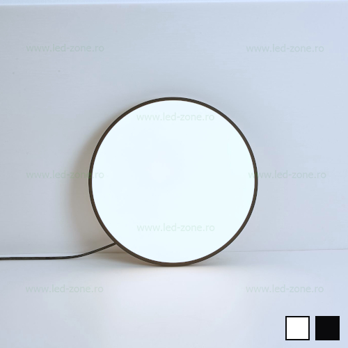 ✔️ Design rotund și compact: Cu un diametru de 270 mm și o grosime de doar 50 mm, aplica se integrează discret în orice decor. Carcasa este disponibilă în culorile alb sau negru, cu un dispersor mat ce reduce efectul de orbire.