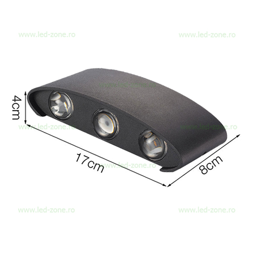 Descriere Aplica LED 2x3W Exterior Negru LZ2056-6 Alb Cald + Alb Rece