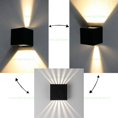 Descriere Aplica LED 2x3W Exterior Patrata Neagra Multi Fascicul LZ2126
