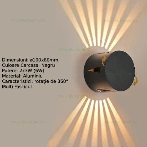 Specificatii Aplica LED 2x3W Exterior Rotunda Neagra Multi Fascicul LZ2125
