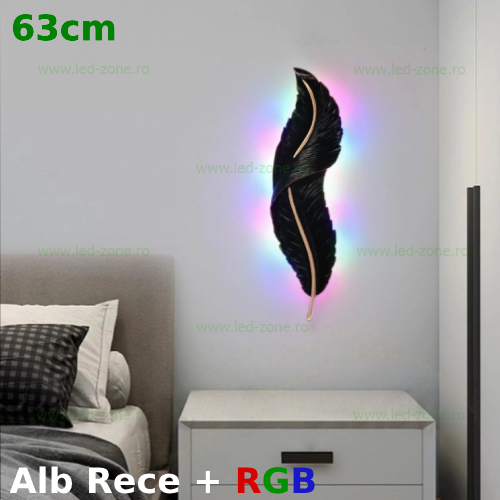 Aplica LED poate face diferenta dintre un spatiu monoton si special. Stilul este cu adevarat contemporan, deoarece nu exista becuri voluminoase sau suporturi de iluminat pentru locuinte. Sursa de tip LED se caracterizeaza prin consum redus, luminozitatea ridicata si durata de viata indelungata. Un flux luminos suficent si poate degaja atat o lumina rece (6500K), ideala pentru momentele petrecute intre prieteni si familie, cat si o lumina RGB, energizanta. Lumina se schimba la fiecare actionare ON/OFF a intrerupatorului: Alb Rece / RGB Static / Alb Rece intermitent cu RGB Static.