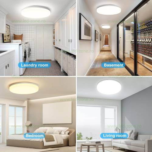 Aplicele LED rotunde au dispersor mat si ofera o lumina uniforma, montajul se poate realiza pe orice tip de tavan sau perete, cu dibluri.