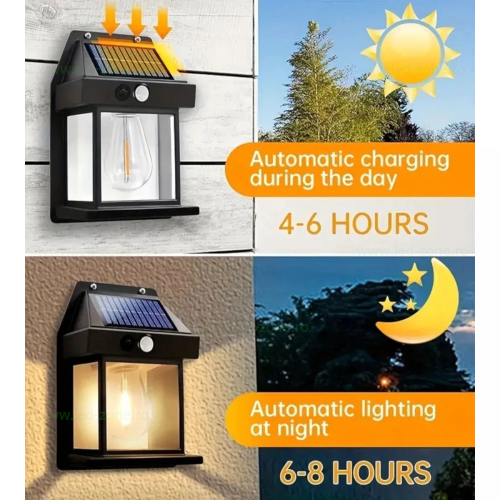 Datorita senzorului zi-noapte, lampa se aprinde doar cand este intuneric si simte miscare. Dupa ce miscarea inceteaza, lumina ramane aprinsa pentru 30 de secunde. In acest mod lampa economiseste energie pentru a functiona pe parcursul intregii nopti.