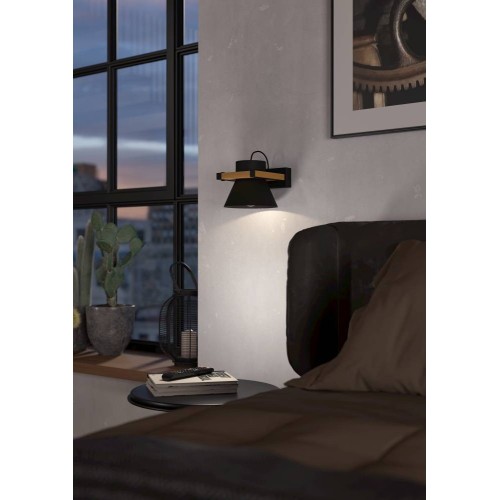 Aplică MACCLES 43958, E27, 1X15W, IP20, oțel, lemn, negru, maro