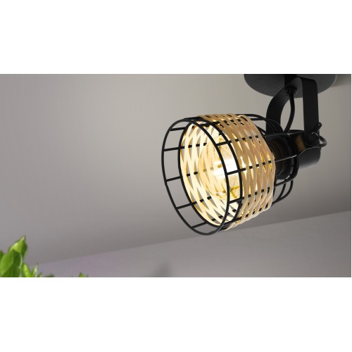 Aplică vintage ANWICK 1 43324, E27, 1X40W, IP20, oțel, negru, ratan, natural