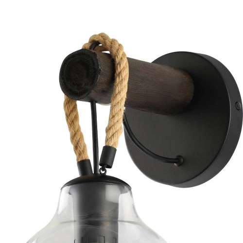 Aplică RODING 43619, E27, 1X40W, IP20, oțel, lemn, negru, maro, sticlă, transparentă