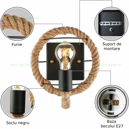 Aplica Rustic 1 Soclu E27 cu Suport Liniar este potrivita pentru iluminat decorativ. Becurile Vintage se comanda separat dupa preferinta fiecaruia.