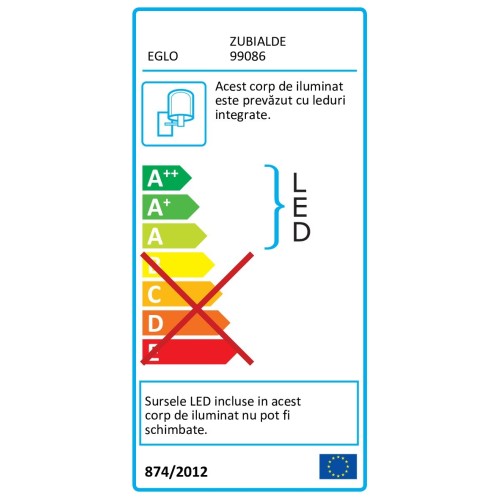 Aplica EGLO ZUBIALDE 99086, LED 12W 1400lm 3000K, Otel, Aluminiu, Alb