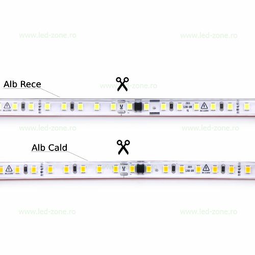 Noile Benzi LED cu alimentare directa la 220V sunt perfecte pentru orice aplicatie de exterior ce necesita o lumina accentuata pe lungimi mari, pana la 50m cu o singura alimentare, evitand astfel montarea mai multor surse ca in cazul benzilor de 12V. Benzile LED 2835 220V au 120 de LED-uri SMD per metru si pot fi taiate din 12 in 12 led-uri, la multiplu de 10cm. De asemenea, alimentarea acestei benzi LED are un aspect nou si se face prin clipsare (se comanda separat).
