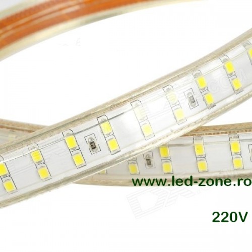 Noile Benzi LED cu alimentare directa la 220V sunt perfecte pentru orice aplicatie de exterior ce necesita o lumina accentuata pe lungimi mari, pana la 50m cu o singura alimentare, evitand astfel montarea mai multor surse si amplificatoare ca in cazul benzilor de 12V.