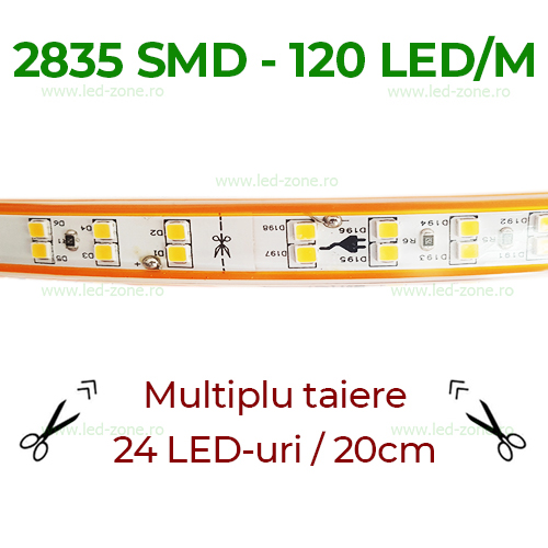 Specificatii Banda LED 2835 198 SMD/ML 220V Taiere 11CM