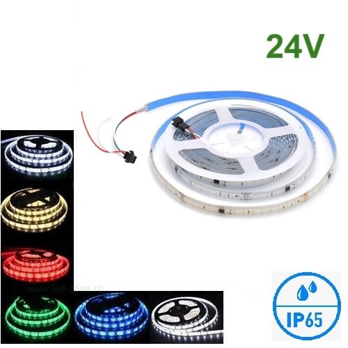 Benzile cu alimentare la 24V au lumina mai stabila, intensitate luminoasa mai puternica si durata de viata mai lunga fata de benzile cu alimentare la 12V.