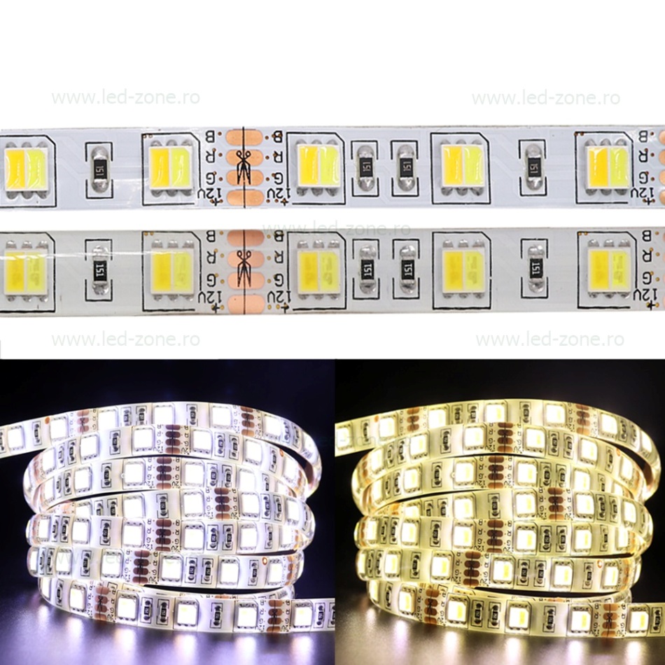Banda LED 5025 dual white va ofera posibilitatea sa obtineti 3 nuante de lumina alba cu ajutorul controllerului CCT cu telecomanda.