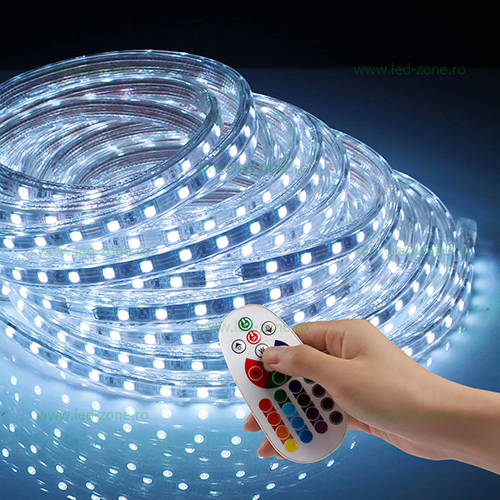 Noile Benzi LED cu alimentare directa la 220V sunt perfecte pentru orice aplicatie de exterior ce necesita o lumina accentuata pe lungimi mari, pana la 50m cu o singura alimentare, evitand astfel montarea mai multor surse si amplificatoare ca in cazul benzilor de 12V.