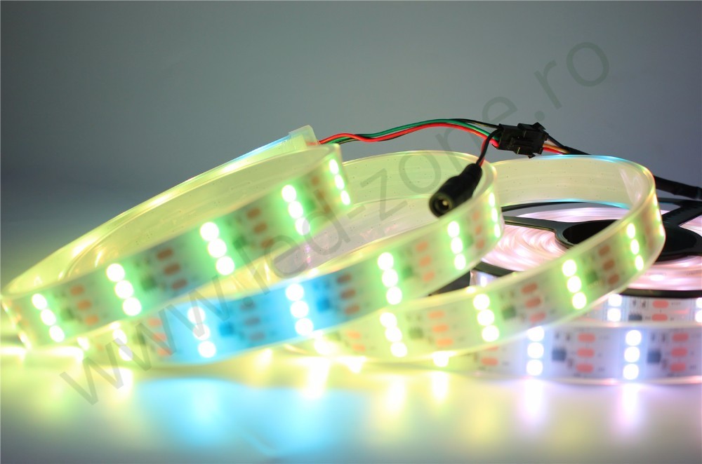 Banda 1903 Dream Color are 90SMD 5050 RGB dispuse pe 3 randuri, este digitala si poate fi programata cu Controller sau DMX, fiind rezistenta la apa.