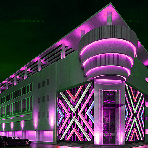 Decorarea diferitelor spatii la exterior, punerea in evidenta a diferitelor contururi pe lungimi foarte mari: case, hoteluri, spitale, scoli, centre comerciale, restaurante, terase, scene etc.