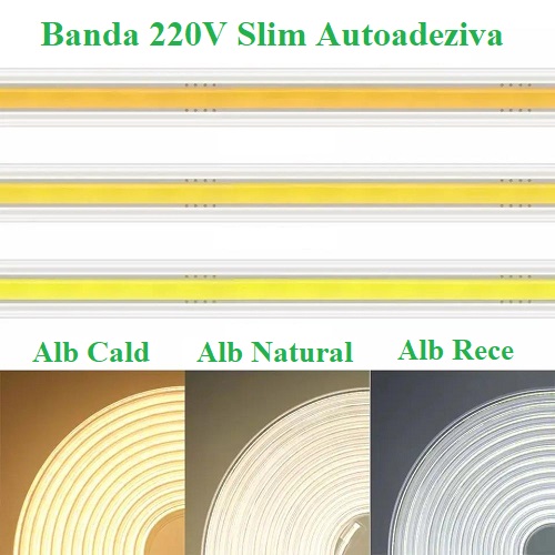Specificatii Banda LED COB 220V Slim Silicon Transparent Autoadeziva
