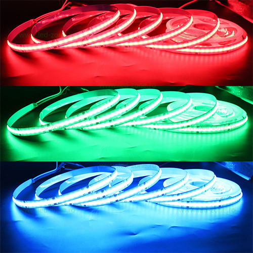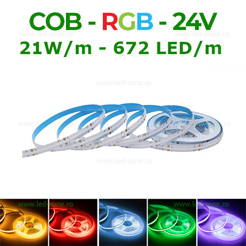 Banda LED COB 672 LED/ML RGB Interior 24V, rola 5m este un produs de iluminat cu performanțe ridicate, conceput pentru utilizare în spații interioare unde se dorește un efect luminos uniform și personalizabil. Folosind tehnologia COB (Chip On Board), această bandă oferă o lumină continuă, fără întreruperi vizibile, datorită densității foarte mari de LED-uri – 672 LED-uri pe metru.