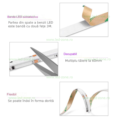 Specificatii Banda LED COB 576 LED/ML RGB Interior Digitala 12V