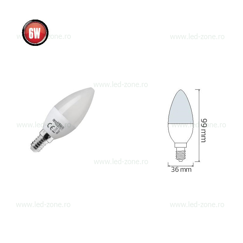 Specificatii Bec LED E14 6W Lumanare Mat Plastic ULTRA