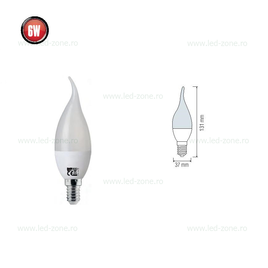 Specificatii Bec LED E14 6W Flacara Mat Plastic CRAFT