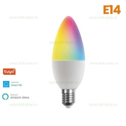 Descriere Bec LED E14 6W Lumanare RGBWW Smart Tuya