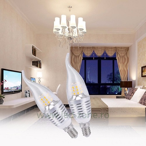 Descriere Bec LED E14 7W Flacara Clar Argintiu SMD2835