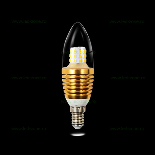 Descriere Bec LED E14 7W Lumanare Clar Auriu SMD2835