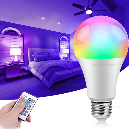 Specificatii Bec LED E27 12W RGBW Telecomanda