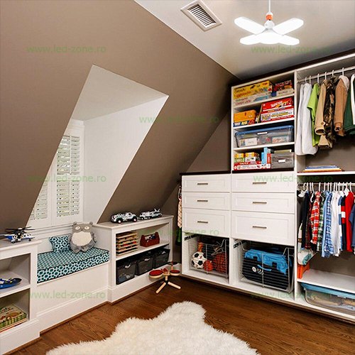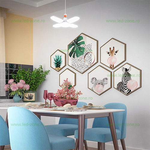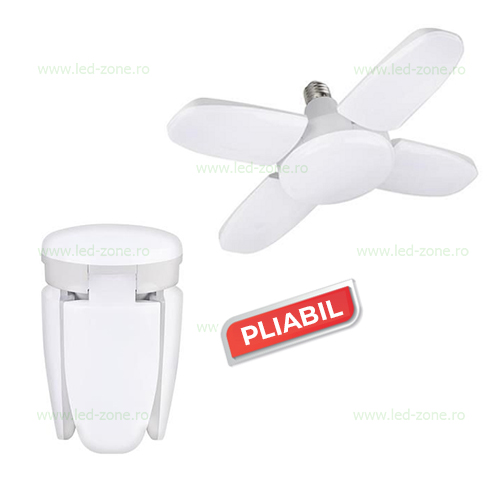 Becurile E27 Pliabile au un design placut si ofera o lumina uniforma cu o suprafata de iluminare generoasa, avand cele 4 parti mobile.