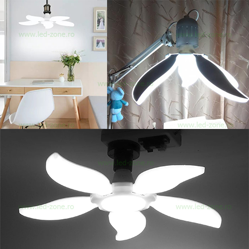 Becurile E27 Pliabile au un design placut si ofera o lumina uniforma cu o suprafata de iluminare generoasa, avand cele 5 parti mobile.