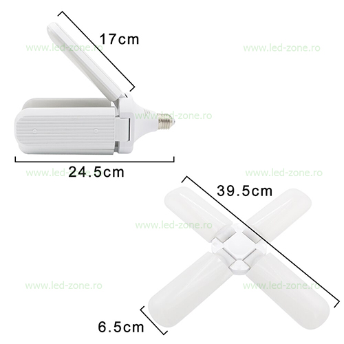 Becurile E27 Pliabile au un design placut si ofera o lumina uniforma cu o suprafata de iluminare generoasa, avand cele 4 parti mobile.