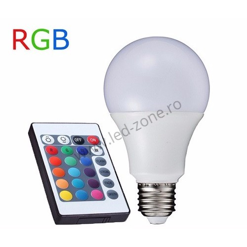 Becurile LED E27 7.5W RGB cu Telecomanda sunt solutia perfecta pentru obtinerea unui iluminat ambiental multicolor, avand posibilitatea sa reglati intensitatea luminii, sa alegeti culoarea dorita de pe telecomanda sau unul din programele presetate de schimbare a culorilor.