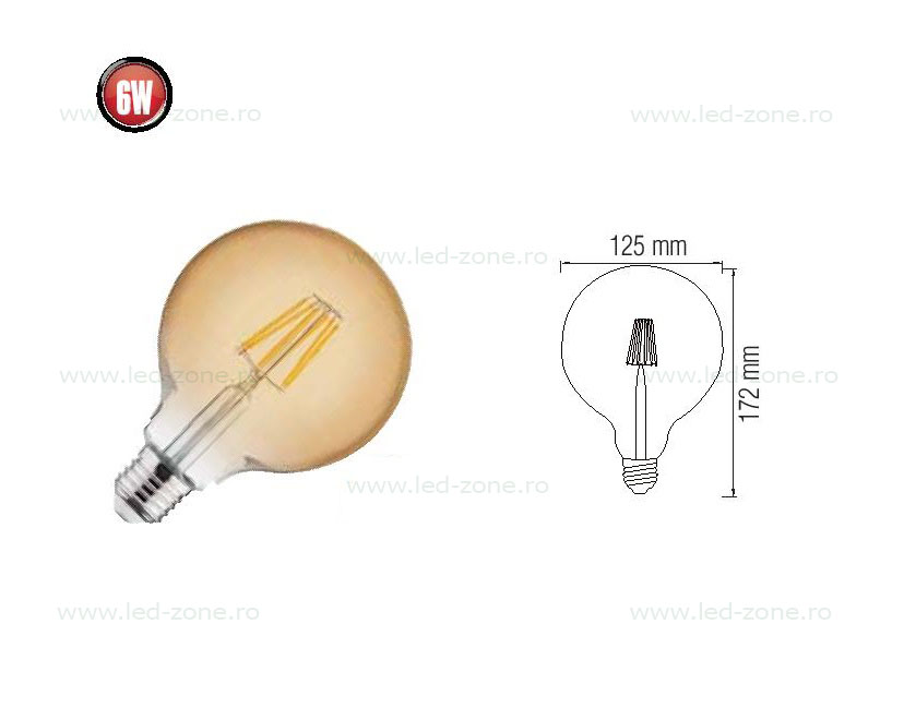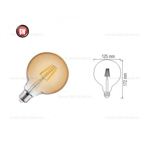 Specificatii Bec LED Vintage E27 6W Glob G125