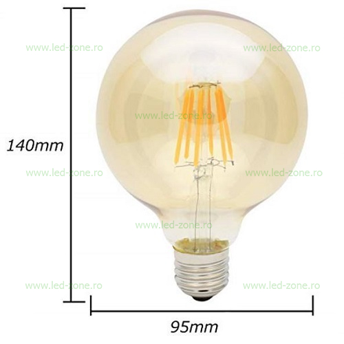 Descriere Bec LED Vintage E27 8W Glob G95